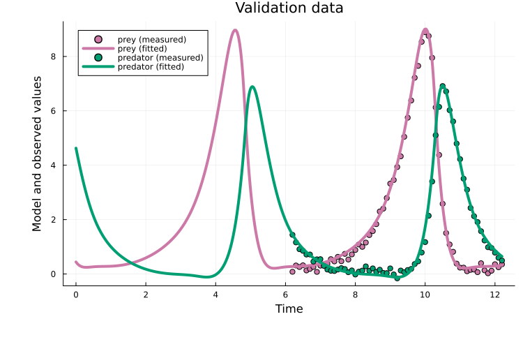]Training and validation data are simulated from the mechanistic Lotka–Volterra model: